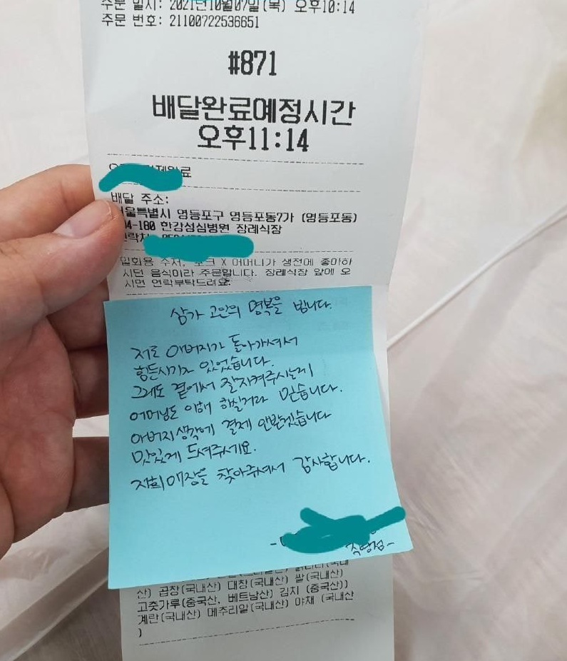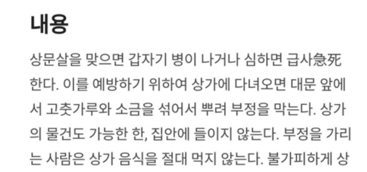 조문객이 한 명만 와도 온갖 반찬과 안주거리를 내놓기 때문이며, 이 때문에 상주가 장례식장 도우미에게 항의하는 경우가 있다.