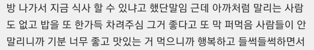 A씨는 “거기서는 먹으면 안되서” 라고 전했다.