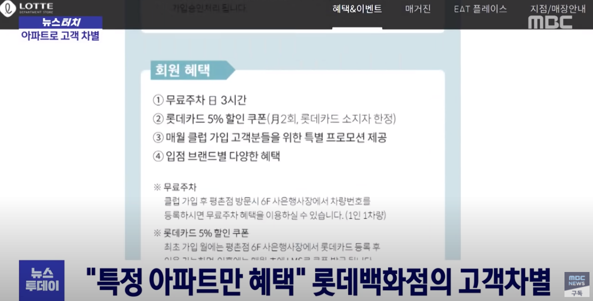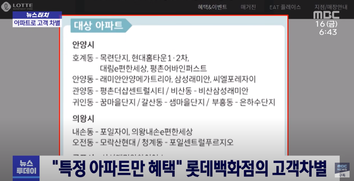 이에 항의하자 롯데백화점 측은”평촌점 내에서 매출액이 가장 큰 아파트들을 선정했습니다.”라고 답했다.