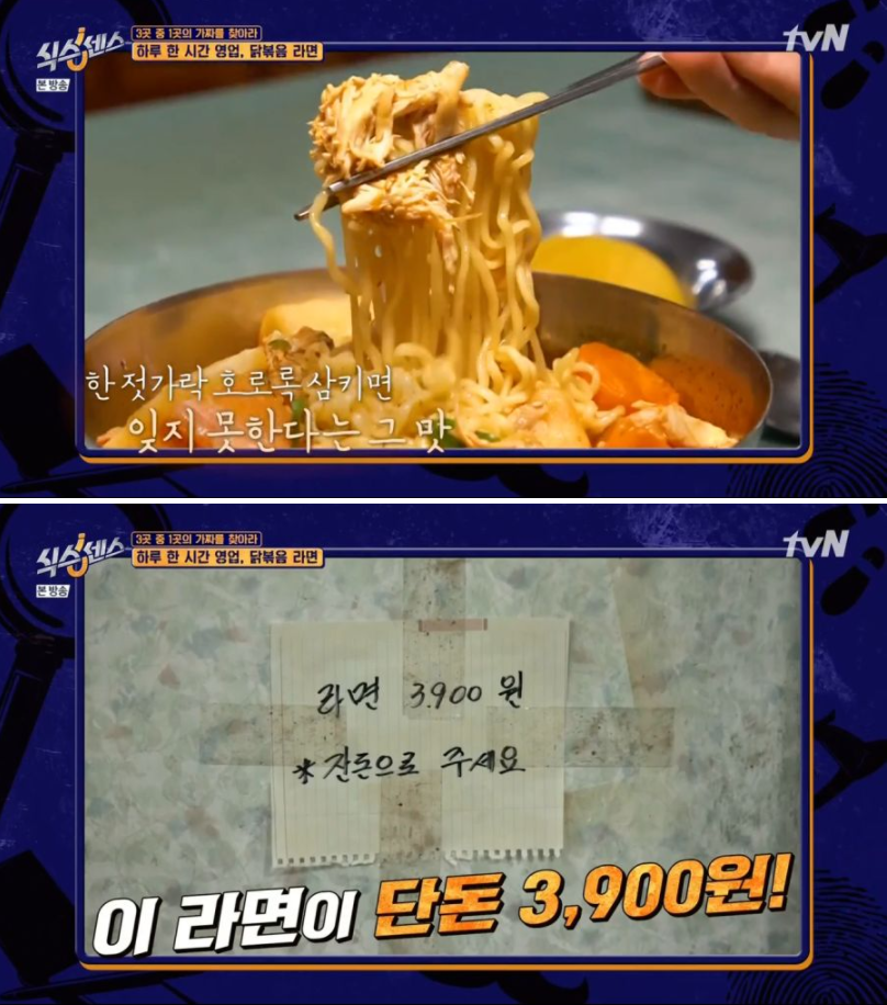 그중 10년 넘게 자리를 지키며 1시간만 영업하는 곳이라고 설명한 라면집에서는 한 그릇에 3,900원에 한번 먹으면 잊지 못한다는 라면을 팔고 있다고 전했다.