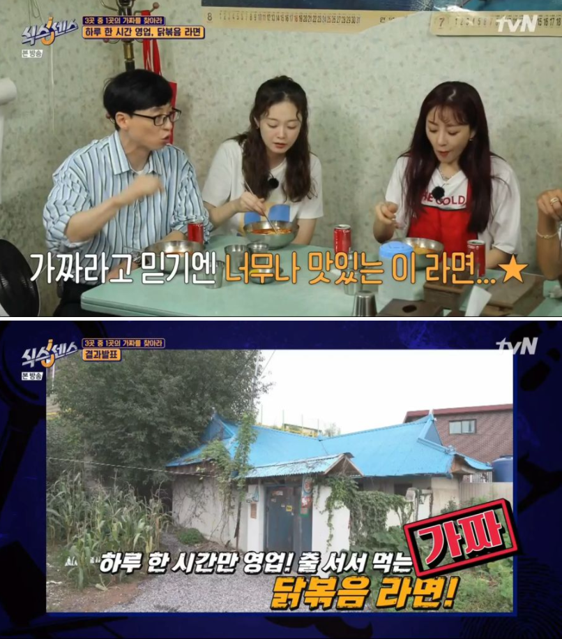 하지만 해당 라면집은 가짜였고, 라면의 정체는 레토르트 닭볶음탕에 라면을 합친 요리였다.