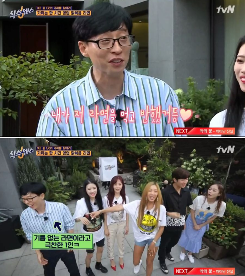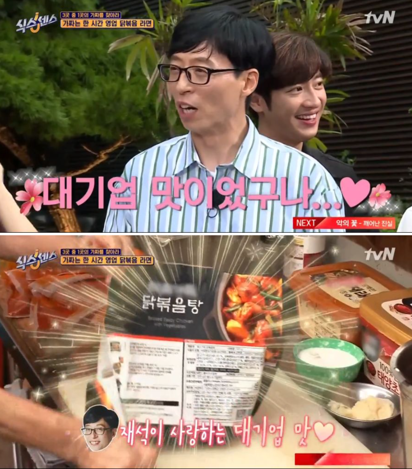 이에 방송인 유재석은 “라면이 정말 맛있었는데 그냥 대기업 라면이었네요. 정말 놀랬습니다.”라는 반응을 보였다.