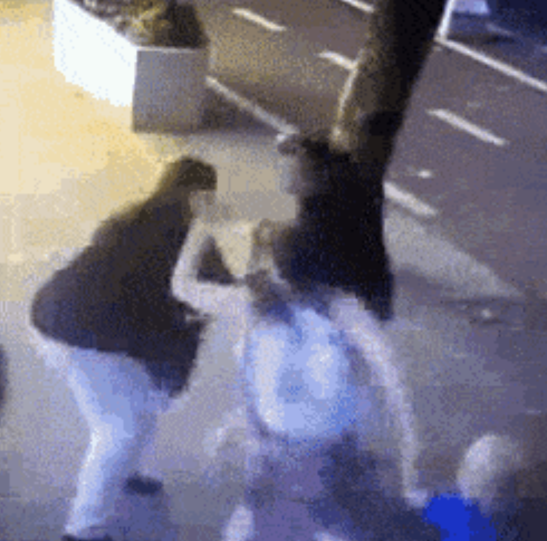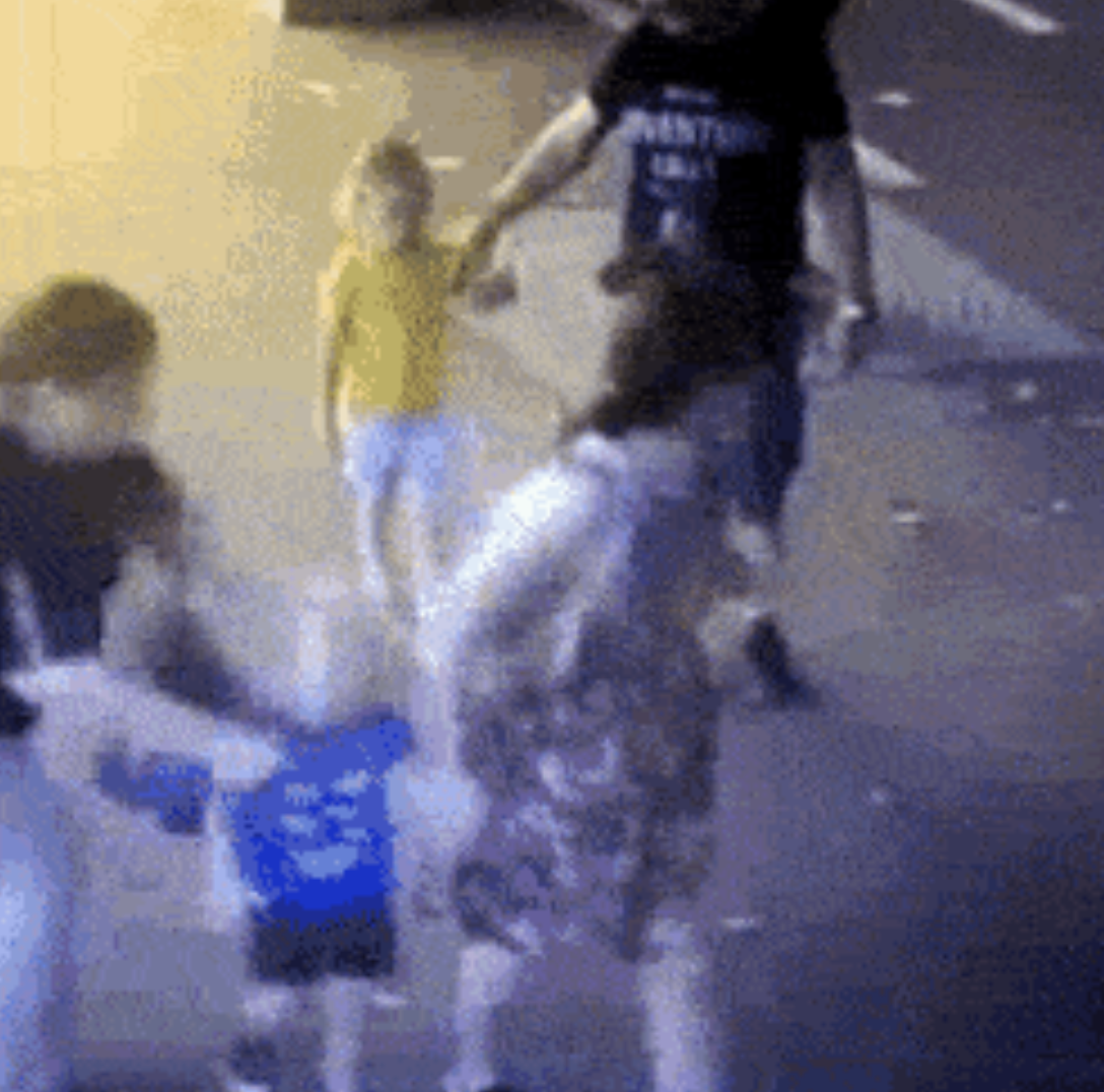 영상 속 한 여성은 한 부부 가족을 지나쳐가는데 갑자기 뒤로 돌더니 주머니에서 칼을 빼 아이들에게 칼을 휘둘렀다.