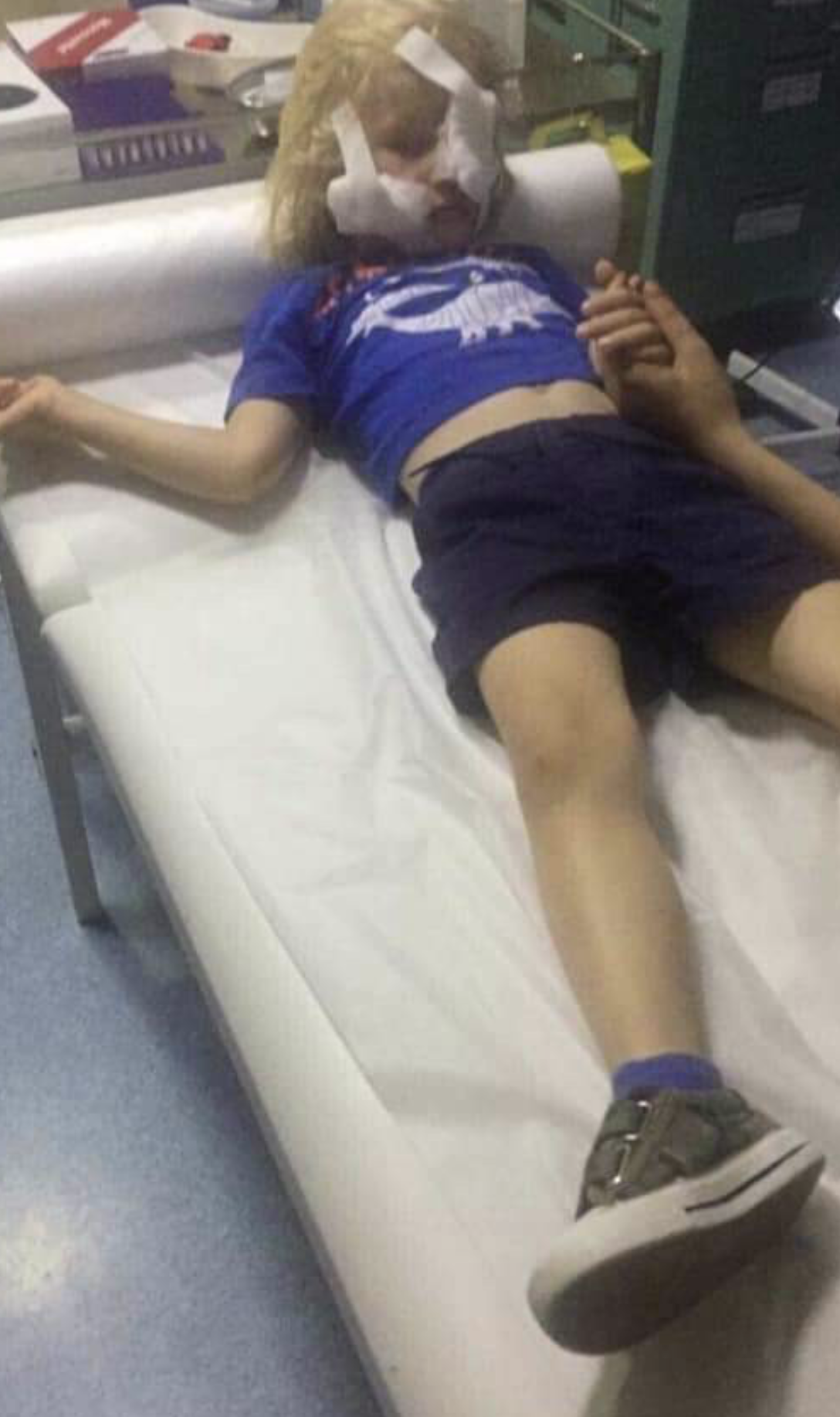 결국 칼부림에 상처를 입은 아이는 응급실로 향했고 아이의 얼굴은 심각했다.
