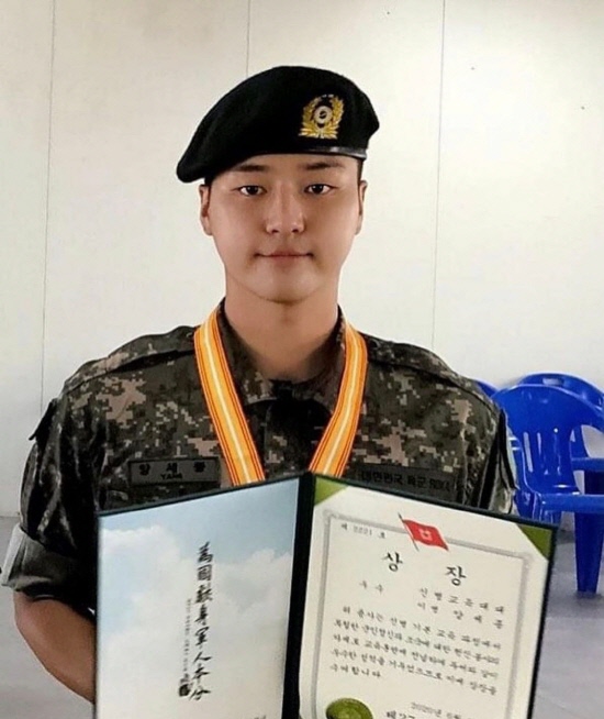 5주 간의 기초군사훈련을 우수한 성적으로 끝낸 양세종은 사단장으로부터 우수상 표창을 수여받았다.
