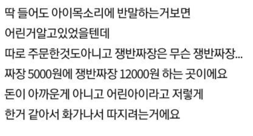 “일부로 어린아이라고 쟁반 짜장으로 덤터기 씌운 것 같은데 여러분들은 어떻게 생각하세요?”라며 네티즌들의 의견을 물었다.