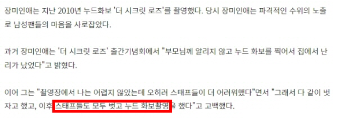 해당 여배우는 노이즈 마케팅을 생각한건지, 기자들과의 인터뷰에서 ‘스태프도 다 벗고 찍었다’라 말한 배우는 ‘장미인애’다.