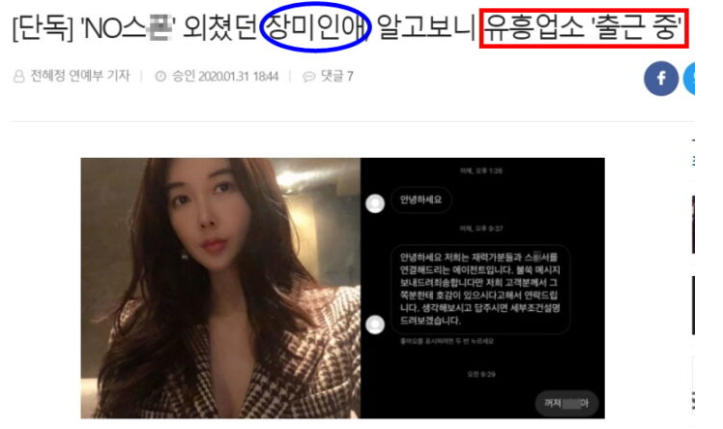 이 뿐만 아니라 장미인애는 SNS를 통해 ‘스폰’ 제안에 ‘꺼져라’고 답변한 사실을 캡처해 공개했다.