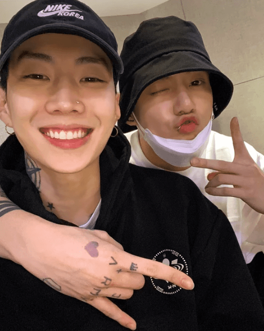 가수 박재범이 방탄소년단 멤버 정국과의 만난 사진을 게시했다.