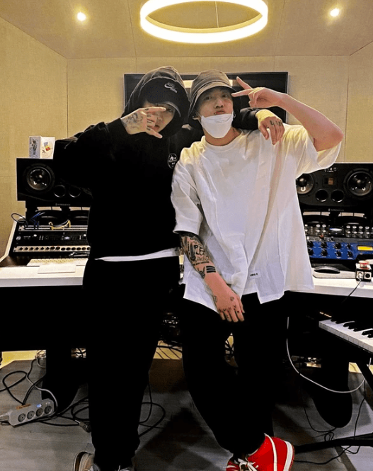 게시 된 사진에는 함께 작업실에서 만난 박재범과 정국을 볼 수 있었다.