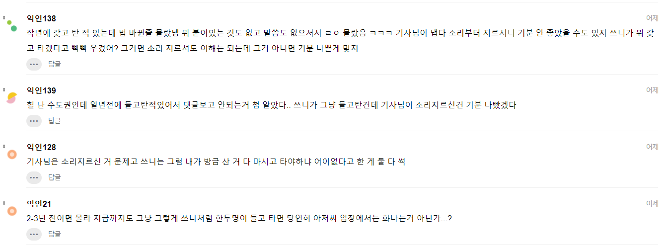 이를 본 온라인 커뮤니티 네티즌들은 “원래 음료는 버스에 반입이 안 되는데 글쓴이분이 잘못하신 거 같아요”, “그렇다고 기사님이 소리를 지를 필요는 없는 것 같은데 기분 나쁘겠네요.”라는 반응을 보였다.