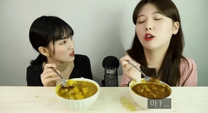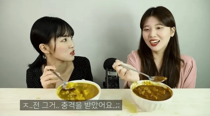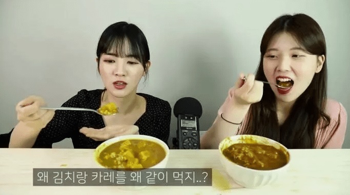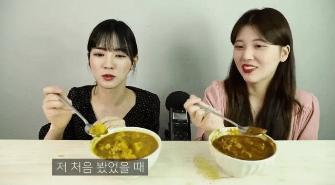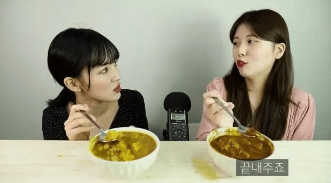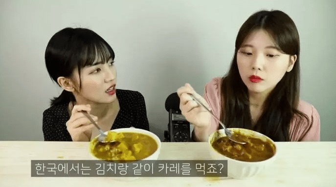 한국 여성 유튜버와 함께 방송한 일본 여성은 카레 먹방을 진행하고 있었다.