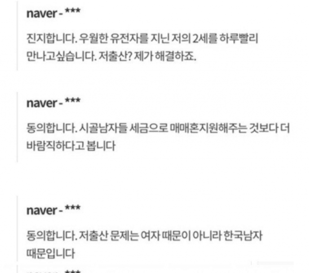 끝으로 한 누리꾼은 “남자들은 동남아에서 신부도 데려오는데. 정자는 왜 안되는가. 이것은 성차별이다” 라는 주장도 등장했다.