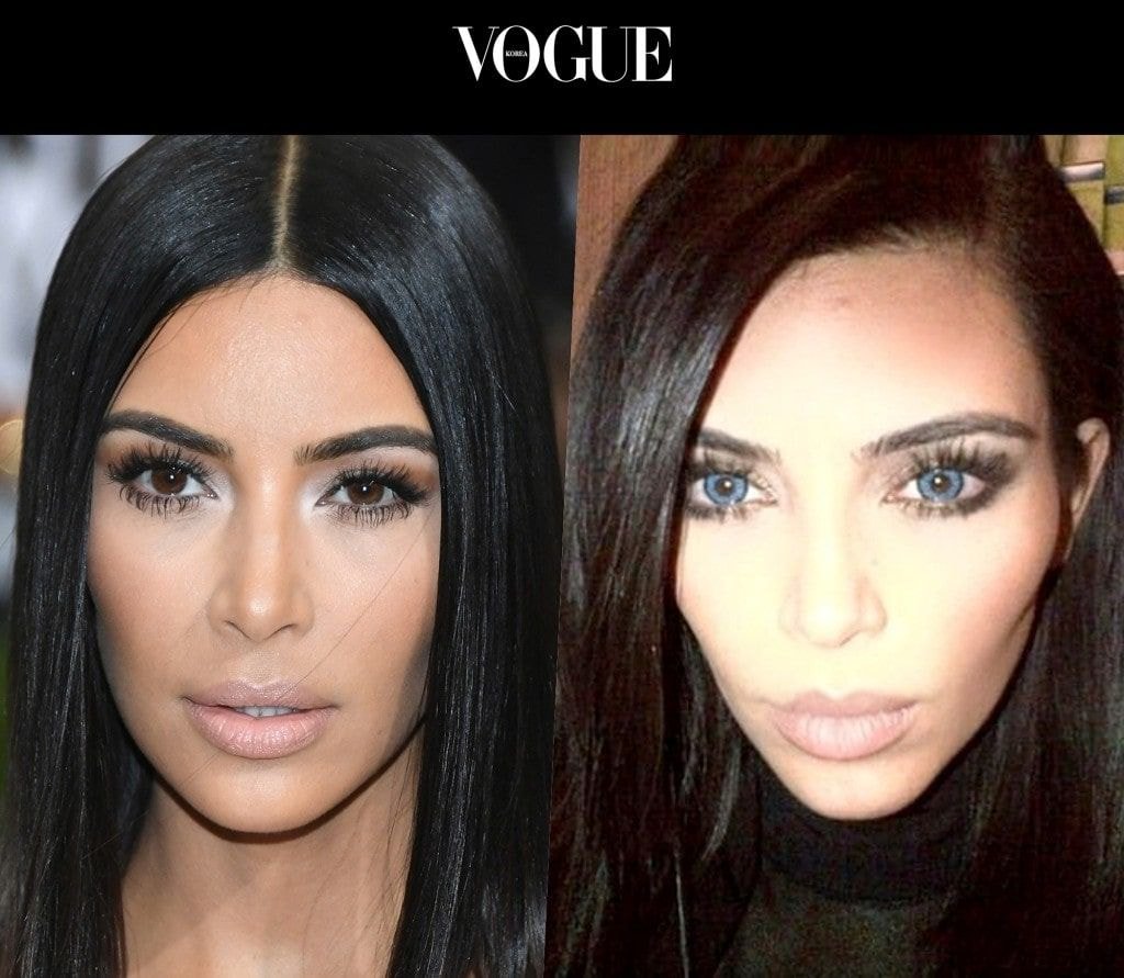 대표적으로 킴 카다시안 가문의 카니예 웨스트, 킴 카다시안 등도 써클렌즈를 착용했을 때와 그렇지 않을 때의 이미지가 확 달라진다.