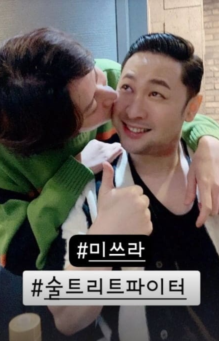 게시한 사진 속 김희철은 미쓰라진의 볼에 뽀뽀를 하고 있어 네티즌들이 놀라며 이목이 집중됐다.