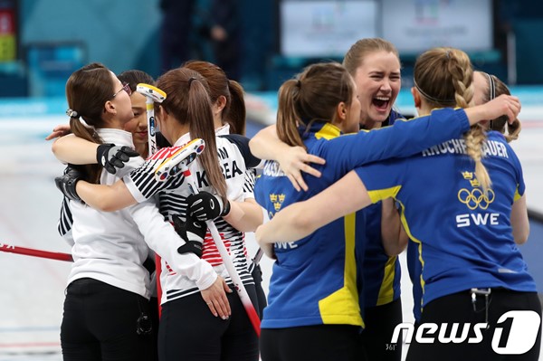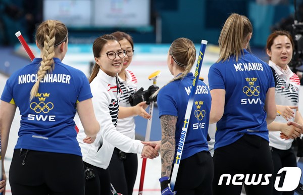 하지만 이날 경기는 끝까지 진행되지 않았다. 여자 컬링 대표팀이 마지막 10엔드를 앞두고 스웨덴 선수들을 향해 악수를 청했고, 이는 ‘기권’한다는 의미다.