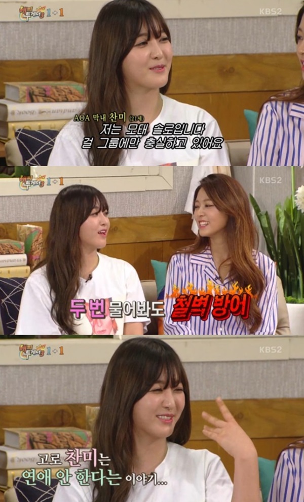 AOA 멤버 찬미는 과거 KBS ‘해피투게더 3’에 출연해 자신이 모태솔로임을 고백했다.