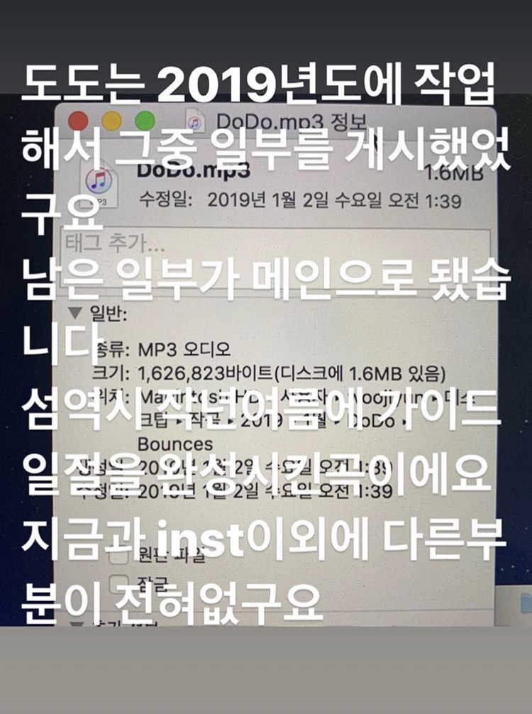 우지윤은 19일 자신의 인스타그램에 “‘도도’는 2019년도에 작업해서 그중 일부를 인스타에 게시했었다”며 “남은 일부가 메인으로 됐다”고 볼빨간사춘기 탈퇴 전 만든 곡임을 밝혔다.