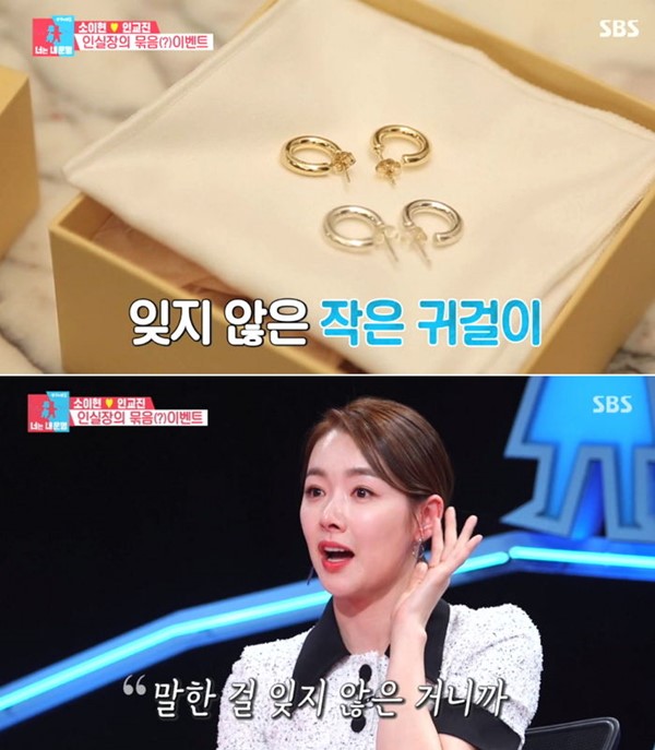 사소한 것 하나도 기억해뒀다가 선물하는 남편의 모습에 소이현은 감동받았고, 이를 본 인교진은 “좋아하는 모습 보니까 미안하다. 충분히 할 수 있는 건데”라며 미안함을 전했다.