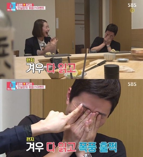 선물과 함께 준비해둔 손 편지가 보이지 않자 인교진은 잠시 자리를 비웠고, 그 사이 소이현은 결국 감동의 눈물을 흘렸다.