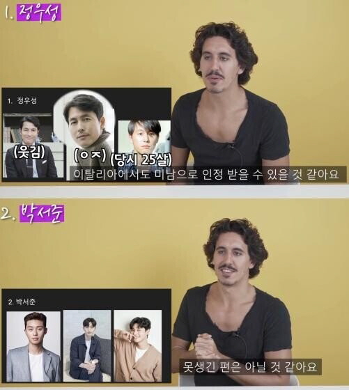 이탈리아 남성 레오는 “배우 정우성은 이탈리아에서도 미남으로 인정받을 수 있을 것 같습니다.”라며 이야기를 시작했다.