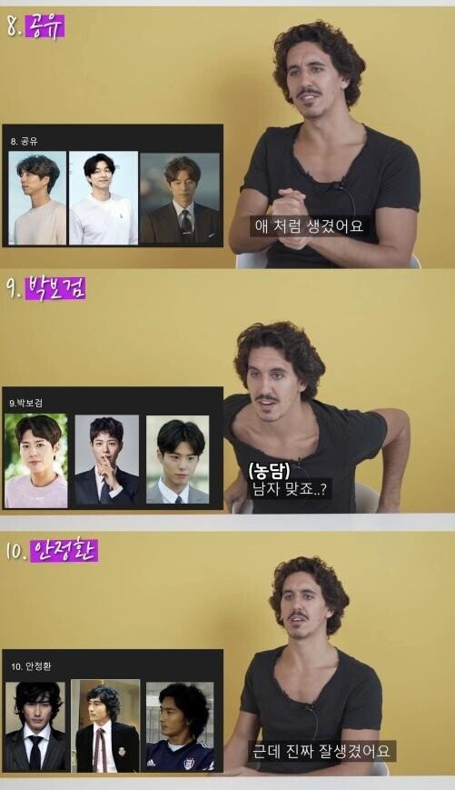 뒤 이어 배우 박보검, 배우 공유, 축구선수 안정환 등 레오는 한국 미남 남성들은 정말 잘생긴 것 같다며 자신의 심정을 밝혔다.