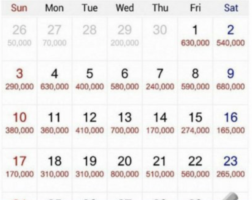 함께 올라온 사진에는 달력에 하루하루 일해서 번 일당들을 적어놓은 캘린더 캡쳐본이 올라와 있었다.
