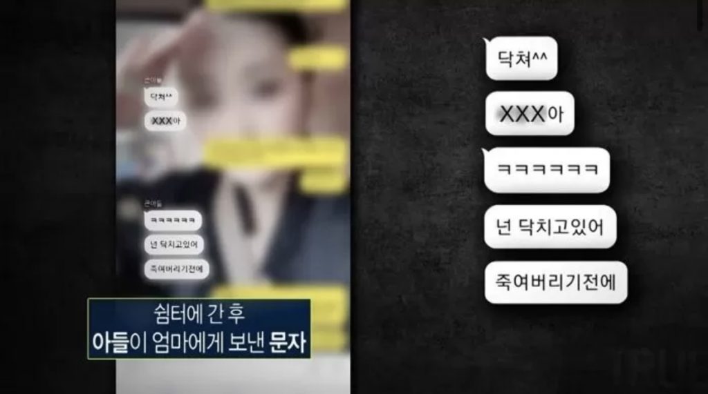 아들은 평소 애정이 듬뿍 담긴 메시지들을 어머니에게 보내왔지만 쉼터에 간 이후부터 욕설을 내뱉는 비행청소년으로 변했다고 한다.