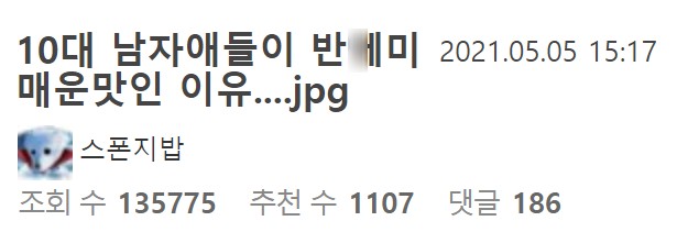 한 온라인 커뮤니티에는 “2030보다 더 매워진 10대 남학생들” 이라는 제목의 글이 올라왔다고 한다.