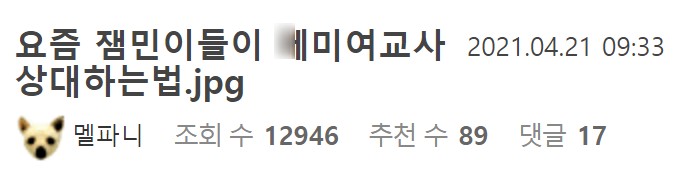 해당 온라인 커뮤니티에 올라온 글의 내용은 현재 10대 남학생들의 행동들과 선생님들과 있었던 에피소드 등이 올라와 화제가 되고 있다.