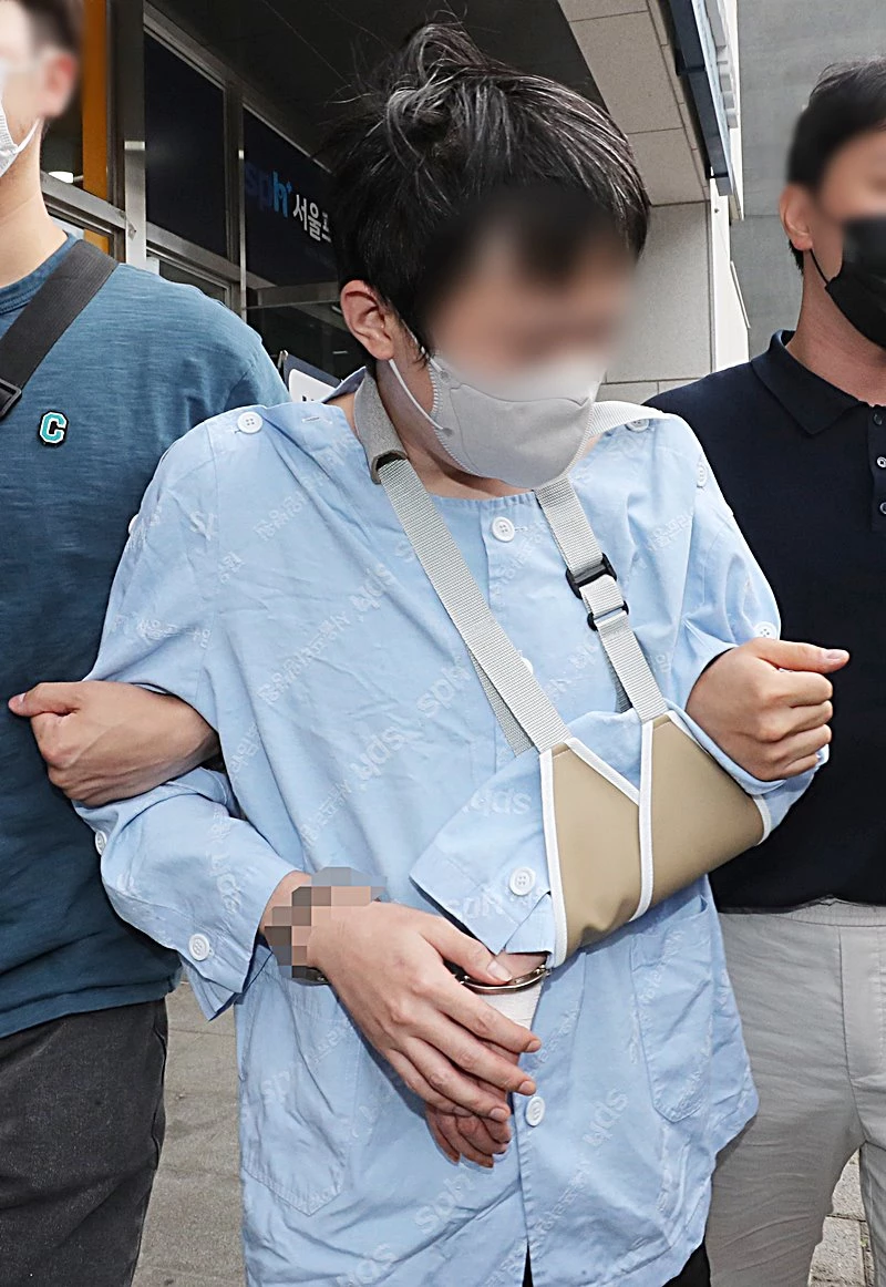 사진 속 전 씨는 한쪽 팔에 깁스를 한 상태였고 상의는 환자복을 입었으며 전 씨는 범행 과정에서 손을 다쳐 병원 치료를 받았고 현재는 유치장에 입감된 상황이라고 한다.