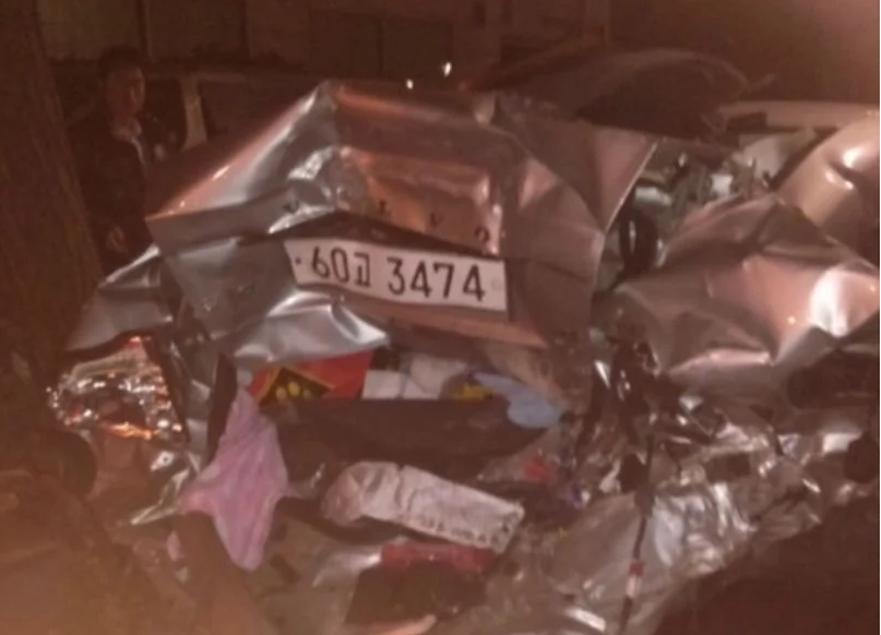 이에 그 트럭과 정면으로 충돌해 사고 난 박지윤씨의 가족의 차는 완전히 망가졌다.