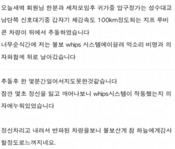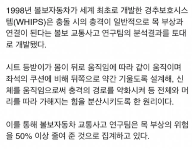 운전자의 볼보의 whips 시스템 찬양은 아래에 나와있다.