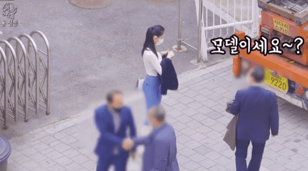 남녀노소, 연령불문 할 것 없이, 지나가는 모델을 힐끔힐끔 쳐다보고 지나가는 모습이었다.