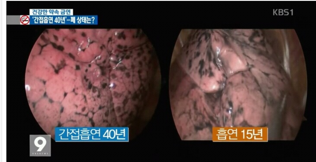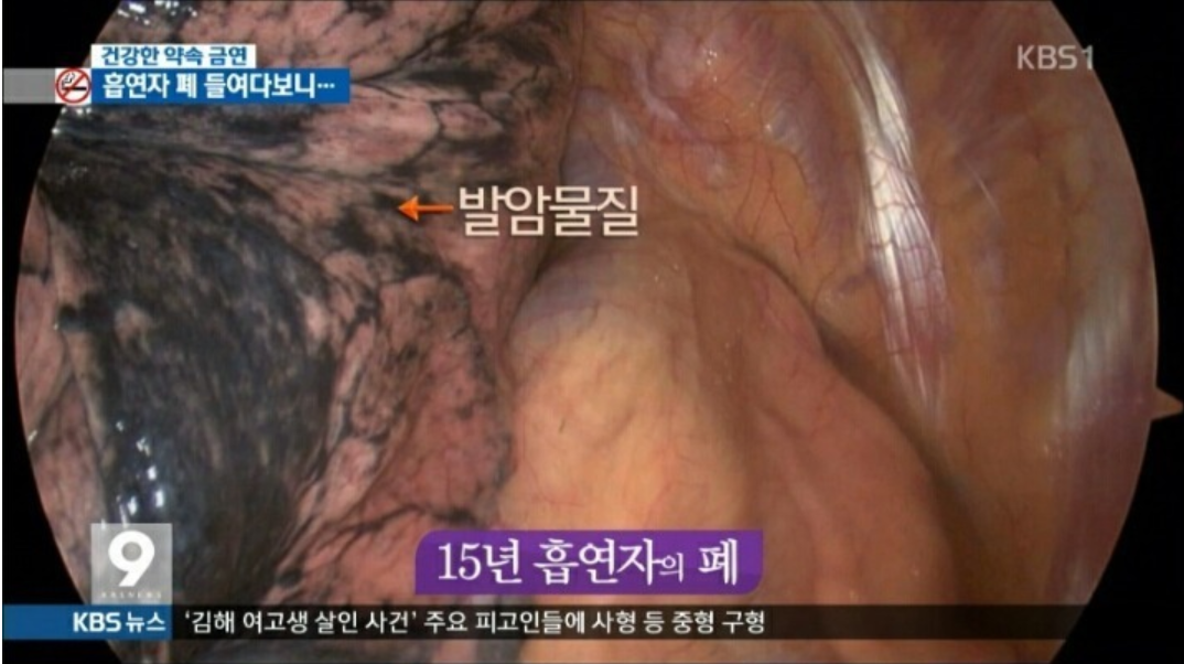 지금부터 흡연자의 폐를 내시경으로 봤을 때 벌어지는 충격적인 모습을 함께 살펴보도록 하자.