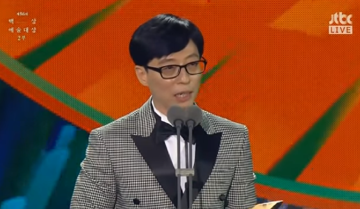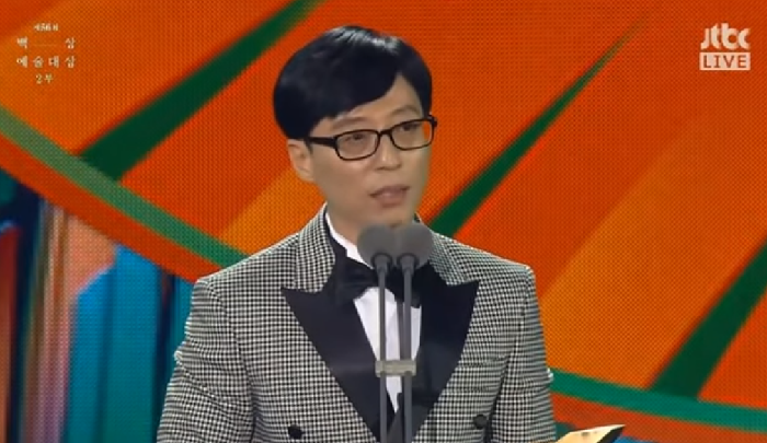 방송인 유재석이 ‘2020 백상예술대상’에서 센스있는 수상소감을 전했다.