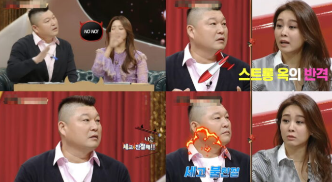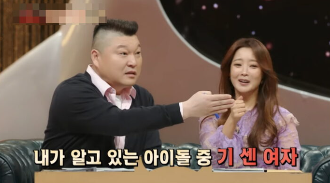 강호동이 정색을 하며 “내가 알고 있는 아이돌 중에서 가장 기가 센 여자다”라 지지 않는 대답을 한번 또 했다.