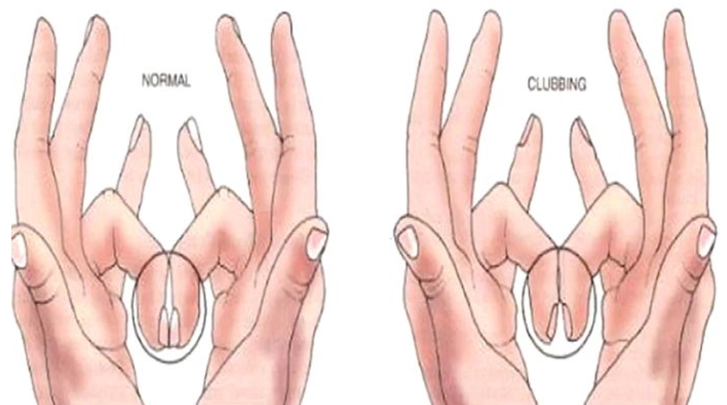 위 사진 처럼 양쪽 검지 손톱을 마주 댔을 때 손톱의 모양을 보고 건강 상태를 예측할 수 있다.
