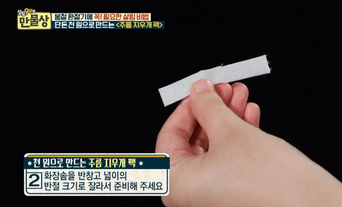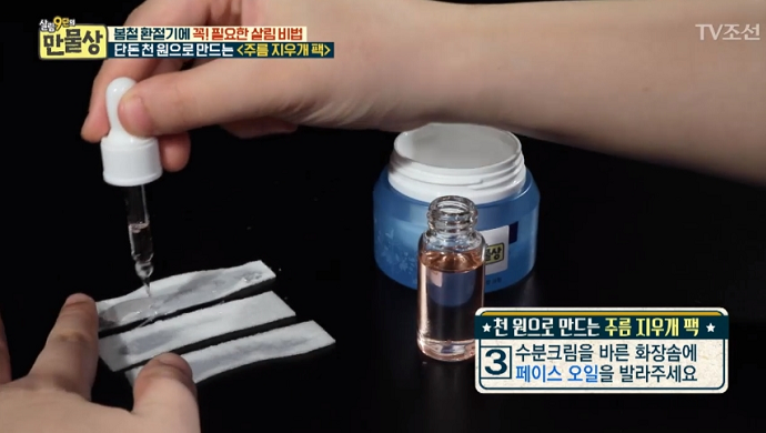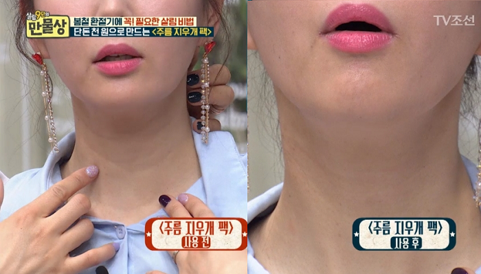 그는 “1,000원으로 목주름을 없앨 수 있다”며 직접 팩을 만드는 비법을 전수했다.
