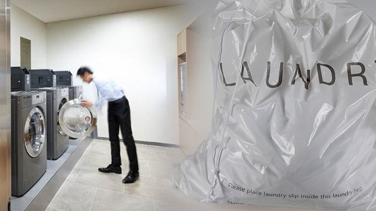 비싼 호텔 세탁 서비스를 이용하기보다 가까운 코인 세탁소를 이용하고 싶을 때 세탁물을 넣어 들고다닐 수 있는 런드리 백이다.