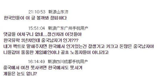 “일본여자는 모르겠는데 확실히 한국여자한테는 중국남자 인기 최고임”