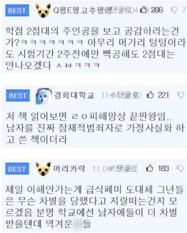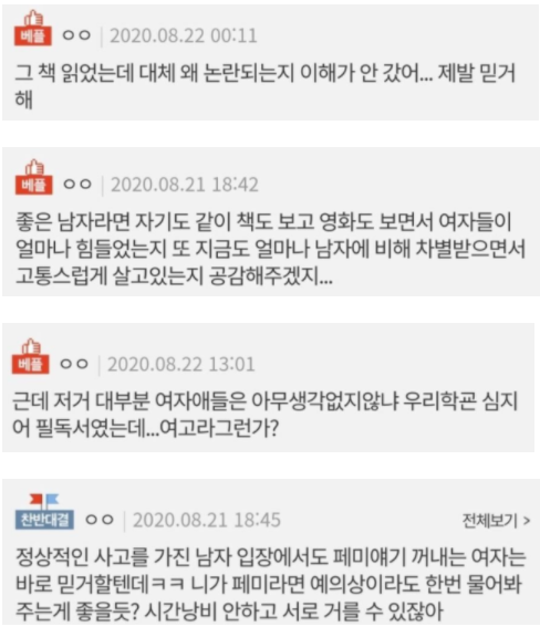 이런 반응을 보였고 찬반대결에서는 여초 커뮤니티이기에 공감보다 반대가 더 많았다.