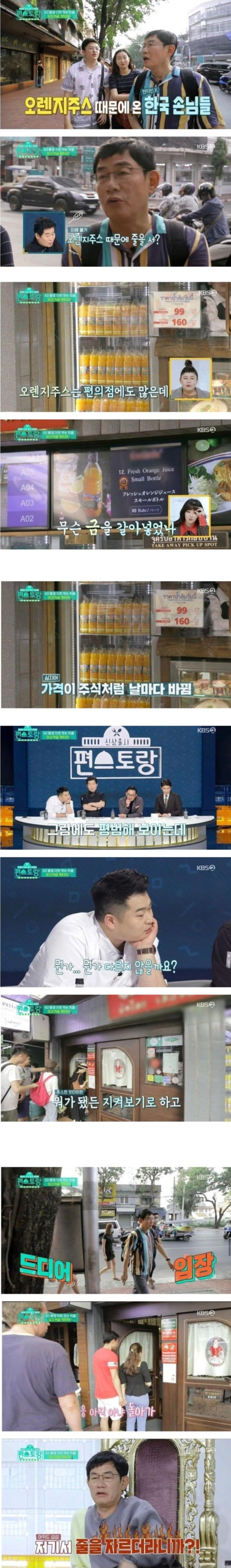 방송인 이경규는 긴 기다림의 끝에 오렌지주스를 먹을 수 있었고, “이런 오렌지주스는 처음이다 정말 맛있고, 태국에서 먹었던 모든 것 중에 당연 1등이다.”라며 당시 상황을 전했다.
