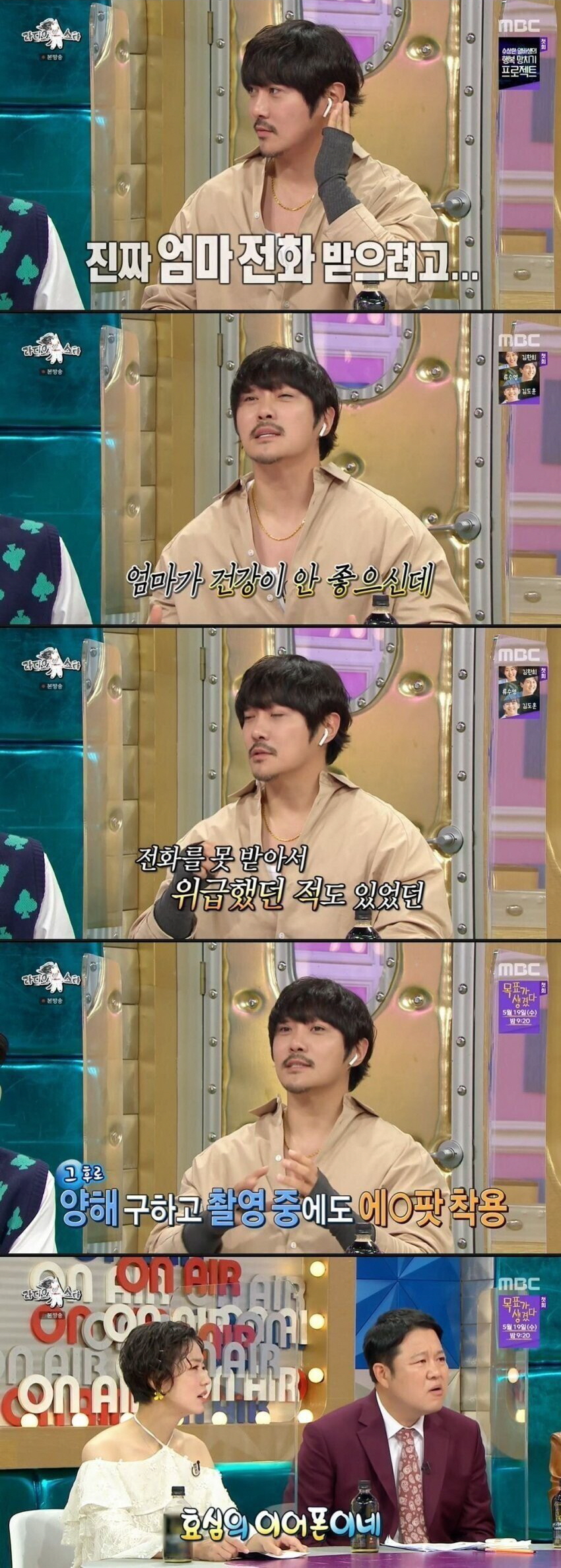 이어서 가수 KCM은 “진짜 저희 어머니 전화를 받으려고 무선 이어폰을 착용하고 있다.”, “저희 어머니가 건강이 안 좋으신데 전화를 못 받아서 위급했던 적이 있었다.”라고 말을 덧붙였다.