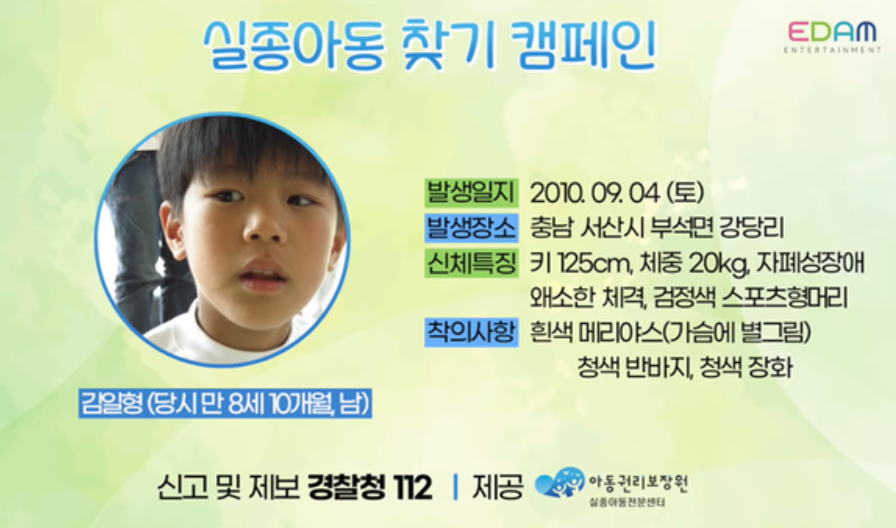 그리고 영상이 끝날 무렵 ‘실종 아동 찾기 캠페인’ 사진이 나왔다.
